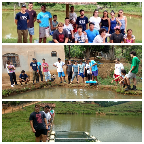 Nos dias 26 e 27 de outubro de 2018, os alunos do 2º período do Curso de Engenharia de Aquicultura do IFES/ Campus de Alegre, realizaram diversas atividades integradas com a comunidade da Fazenda Gironda e Divino, na região localizada entre os Municípios de Jerônimo Monteiro e Muqui, com finalidade de atender algumas demandas dos Piscicultores de Base Familiar, ampliar as ações dos estudantes além do espaço escolar, possibilitar a troca de conhecimento entre produtores e estudantes, além de conhecer a realidade dos piscicultores. Diversas atividades foram realizadas como: verificação da qualidade de água, cálculo de vazão, marcação dos viveiros de cultivo via GPS, manutenção dos viveiros, biometria dos animais, avaliação de propriedades com potencial de cultivo e também envolvemos os estudantes da Escola Municipal de Ensino Fundamental Juscelino Kubitschek com a produção de aquários sustentáveis com a utilização de lixo e pisos cerâmicos (Projeto BioTv Interativa). Todas as atividades contaram com o apoio das comunidades envolvidas, o Ifes/Campus de Alegre e a Cooperativa dos Alunos do Instituto Federal do Espírito Santo - Campus de Alegre (COOPA-IFES/ALEGRE), o que proporcionou um adequado desenvolvimento das atividades, superando todas as expectativas. As informações coletadas e em processamento serão inseridas no Projeto de Extensão Intitulado: Desenvolvimento Sustentável da Piscicultura no Município de Jerônimo Monteiro e também serão apresentados para os possíveis parceiros do Projeto – O Incaper e a Secretaria Municipal de Agricultura de Jerônimo Monteiro, para que juntos possamos contribuir para o Desenvolvimento Sustentável da atividade, gerando uma fonte alternativa de renda e melhoria da qualidade de vida dos produtores. Ao final, verificamos o grande potencial da região para a Piscicultura, devido a quantidade e qualidade da água disponível na região, temperatura, entre outros fatores, que nos motivam para um planejamento em longo prazo das ações.