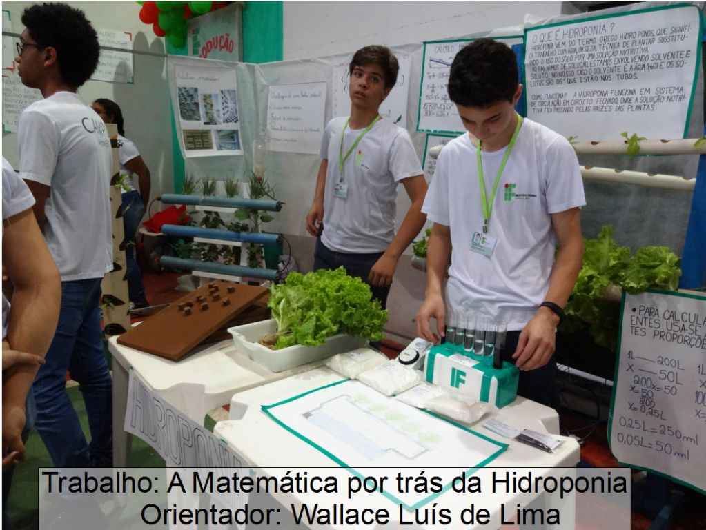 No dia 25, no Ginásio Poliesportivo do Campus, ocorreu a Mostra de Ciências e a Feira de Cursos Superiores, onde foram apresentados trabalhos realizados por professores e alunos dos cursos técnicos integrados, abordando o tema “A Matemática está em tudo!”, na qual pode ser demonstrada a importância da Matemática nas diversas disciplinas dos cursos.