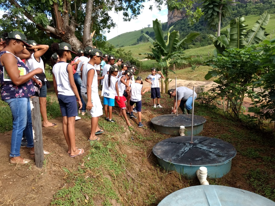 Inicialmente os produtores ressaltaram sobre a importância da preservação dos recursos hídricos e em seguida realizou-se a visita ao sistema de tratamento de esgoto da propriedade, (Sistema de Fossa Séptica Biodigestora), onde foram apresentadas e detalhadas todas as etapas de funcionamento do sistema pelos produtores. Posteriormente foram para uma área com nascentes desprotegidas, onde foi realizado um diálogo e o plantio de mudas nativas da Mata Atlântica.