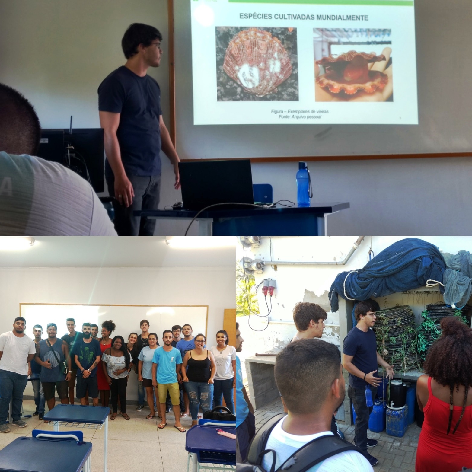 Entre os dias 11 e 15 de março de 2019, os alunos do 7º período do Curso de Engenharia de Aquicultura do Ifes - Campus de Alegre, cursaram a disciplina de Maricultura de forma condensada na região sul litorânea do Espírito Santo, realizando diversas atividades integradas referentes a Maricultura, como palestras e atividades de campo sobre cultivo de polvos, mexilhões, ostras, vieiras, camarões marinhos em sistema bioflocos, pesquisas aplicadas em desenvolvimento, além da troca de experiências e informações com os servidores do Ifes - Campus Piúma e os Estudantes de Engenharia de Pesca. Todas as atividades contaram com o apoio, o Ifes - Campus de Alegre, a cooperativa dos alunos do Instituto Federal do Espírito Santo - Campus de Alegre (COOPA-IFES/ALEGRE), o Ifes - Campus Piúma e as associações e produtores da região, o que proporcionou um adequado desenvolvimento das atividades, superando todas as expectativas. Ao final, verificamos o grande potencial do Espírito Santo para o Desenvolvimento Sustentável da Maricultura, que nos motivam para um planejamento em longo prazo das ações que necessitam ser trabalhadas entre as instituições e os setores competentes.