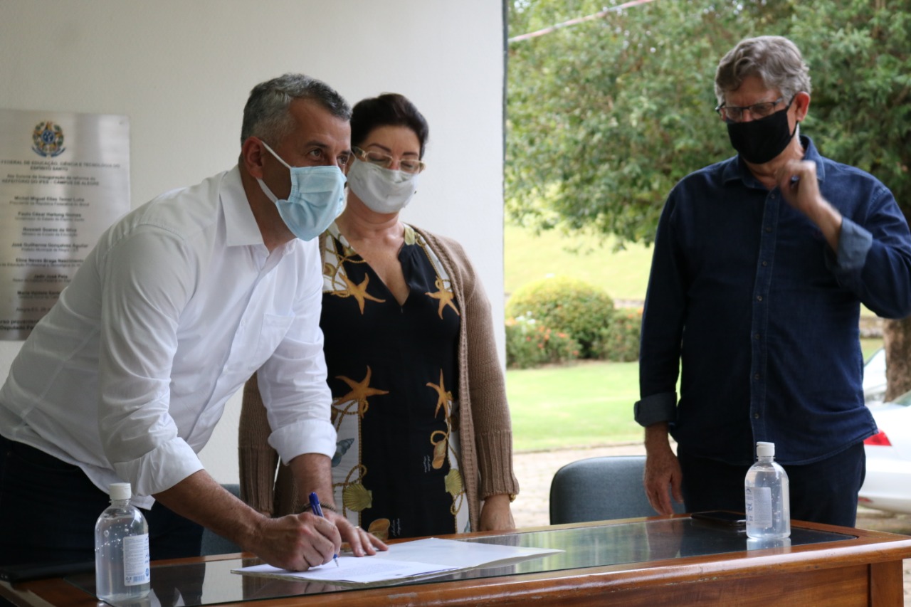 No dia 31 de julho, sexta-feira, no Ifes - Campus de Alegre procedeu-se à assinatura da ordem de serviço, no valor de R$ 464 mil, para a implantação do sistema de minigeração de energia solar fotovoltaica com potência de 180 KWp na referida instituição.